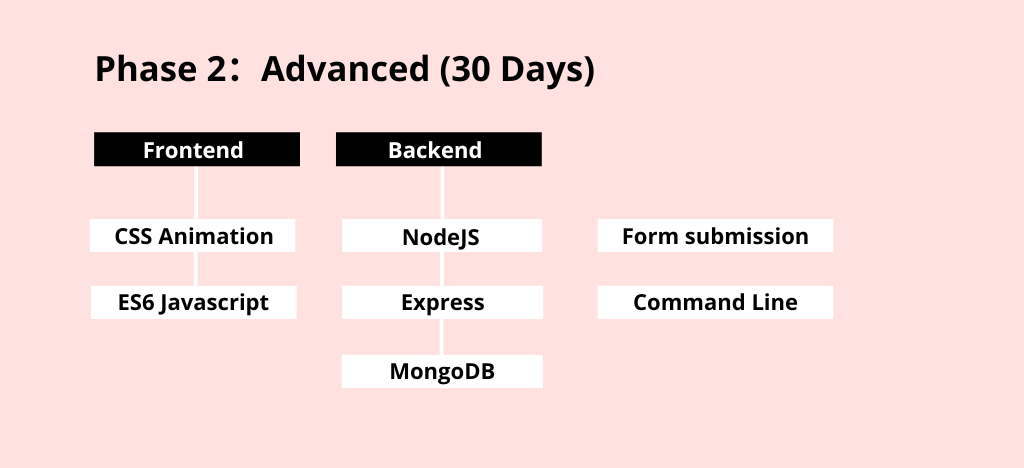 Learn intermediate frontend and backend technologies such as CSS Animation, ES6 JavaScript, Node.js, Express, MongoDB, and complete one real project:
