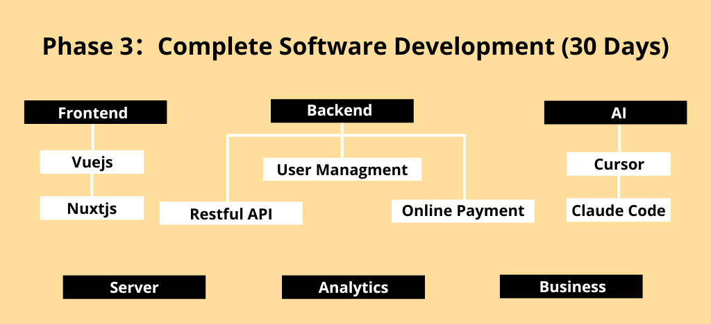 In 90 days, you will learn all the fundamentals and build a complete SaaS application. After that, you can freely combine AI to build the projects you want!